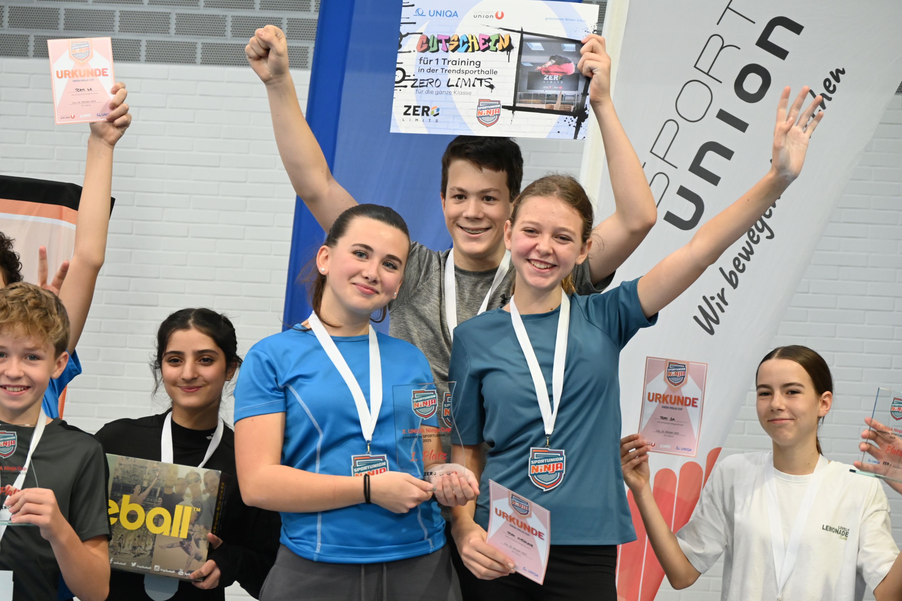Die 4. Klassen nahmen heuer erstmalig beim Uniqua Ninja-Schulcup in Linz teil. Je 3 nominierte Ninjas pro Klasse (4A: Hanna Brunner, Mia Arzt & David Rumetshofer; 4B: Lioba Hauber, Paul Herrnböck & Mia Hofstadter; 4C: Charlie Devigne, Moritz Schmied & Lisa Hauser; 4G: Paul Tanninger, Jana Hintenaus & Pia Kattner) stellten sich den herausfordernden Parcours, die ihnen einiges an Armkraft, Geschicklichkeit und Schnelligkeit abverlangten. Nach der ersten Runde stand fest, dass es sowohl die 4A als auch die 4G ins Halbfinale geschafft hat. Nun musste ein neuer, schwererer Parcours gemeistert werden. Dabei zog die 4G ins Finale ein und konnte letztlich in einem sehr knappen Rennen den Tagessieg nach Schlierbach holen und damit ein Ninja-Training für die ganze Klasse sowie ein Spike-Ball-Set gewinnen. Wir gratulieren allen Teilnehmenden zu ihrem Mut teilzunehmen und den tollen Leistungen!