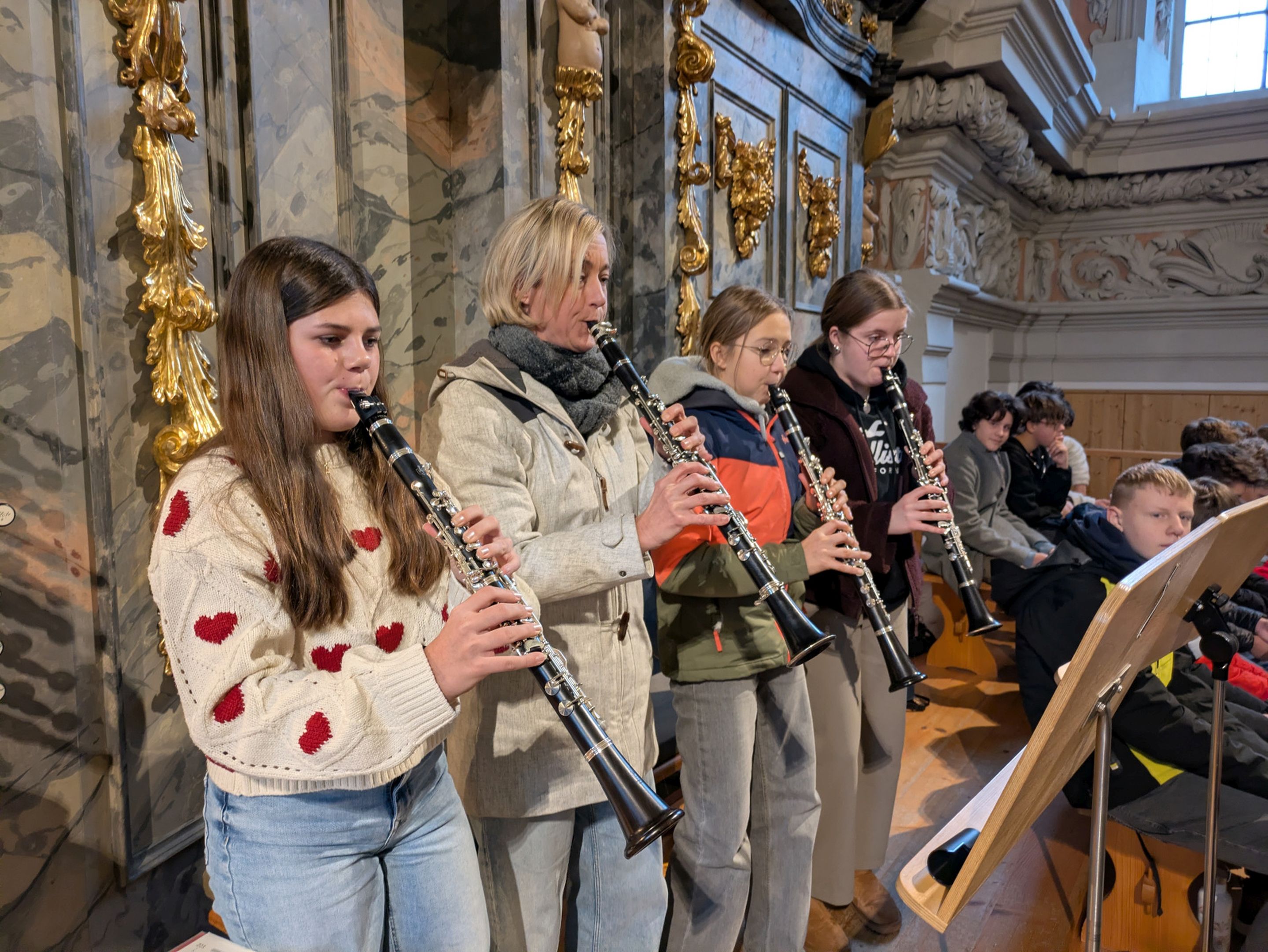 Mit dem gemeisamen Adventkranzbinden von Professor*innen und Schüler*innen aus allen Klassen wird das Nahen des Advents unweigerlich bemerkbar. Gemeinsam wird Reisig geschnitten und Stück um Stück formt sich der grüne Adventkranz, der schließlich noch mit vier Kerzen bestückt und geschmückt wird. Jede Klasse erarbeitet sich so ein Unikat, das durch den Advent begleitet.