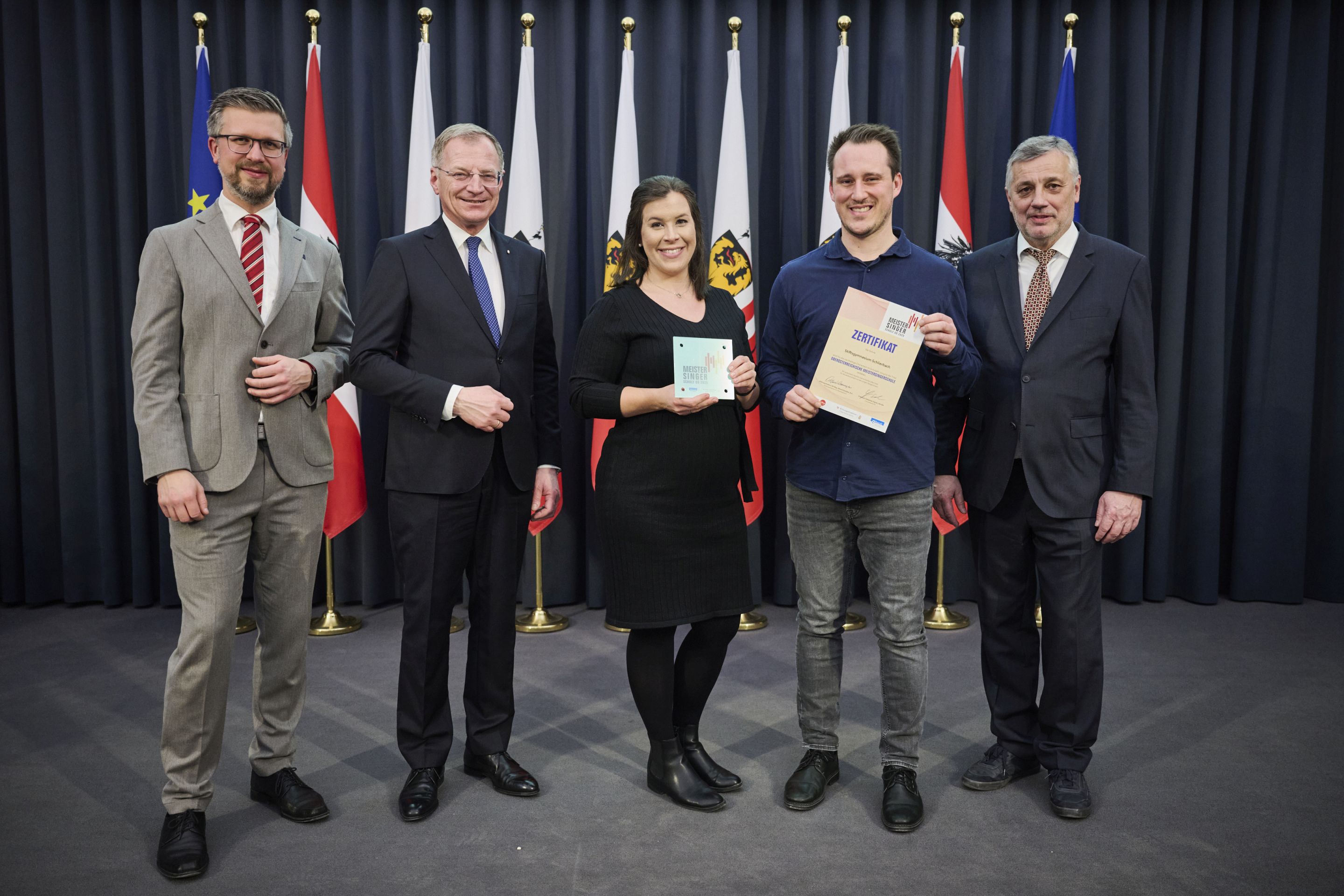 Auch in diesem Jahr darf sich das Stiftsgymnasium Schlierbach über die Auszeichnung als „Meistersingerschule“ freuen. Das begehrte Meistersinger-Gütesiegel wurde von Landeshauptmann Thomas Stelzer und Bildungsdirektor Alfred Klampfer feierlich überreicht.
